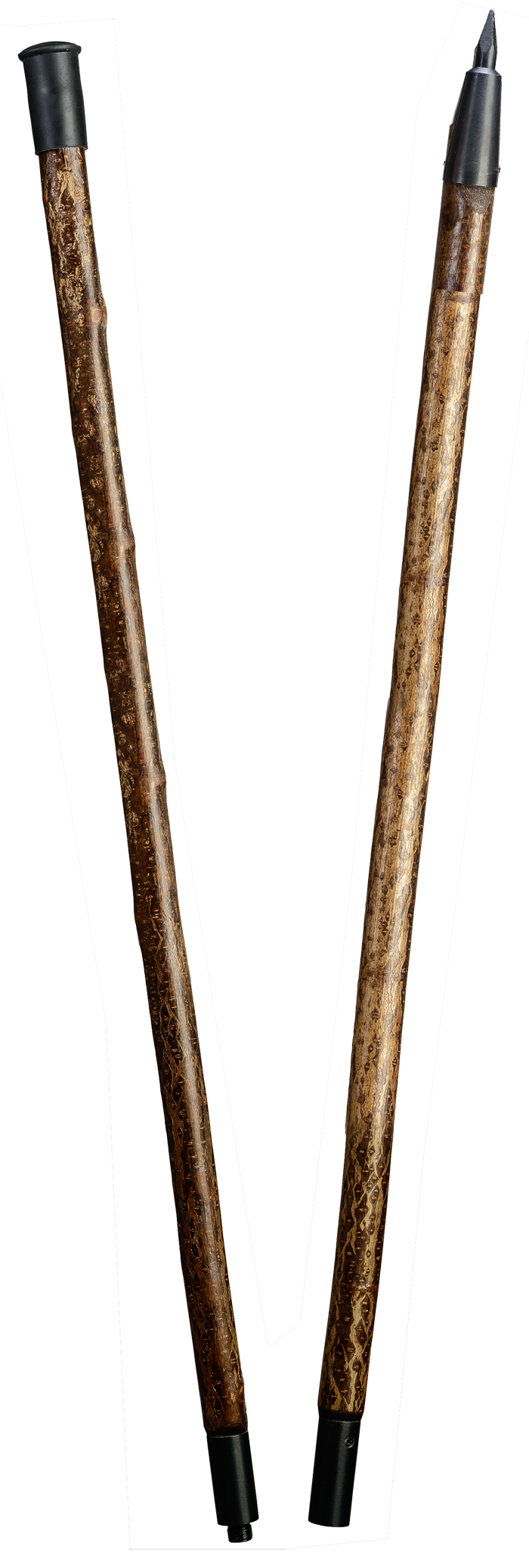 Handgefertigte Alpenstange (Staxlstecken) aus eigener Plantage mit stabil verarbeiteter Verschraubung, rindenecht und seidenmatt lackiert. Mit Gummipuffer und handgeschmiedeter, massiver Spitze.