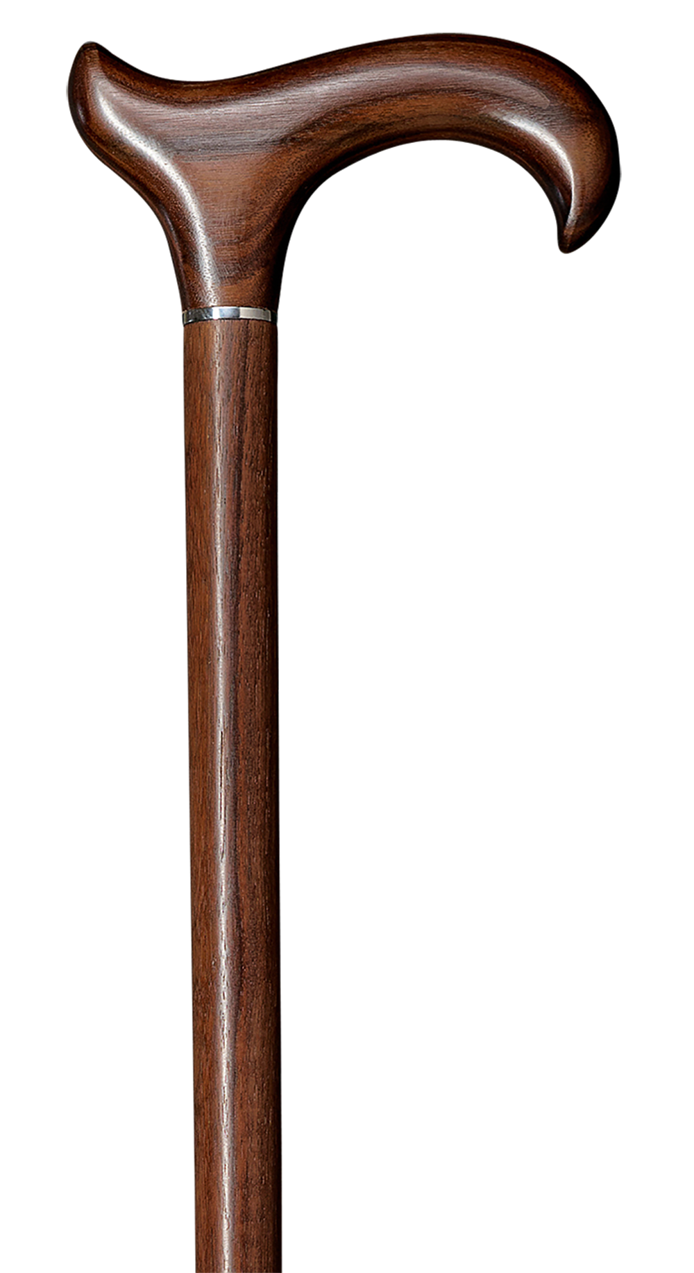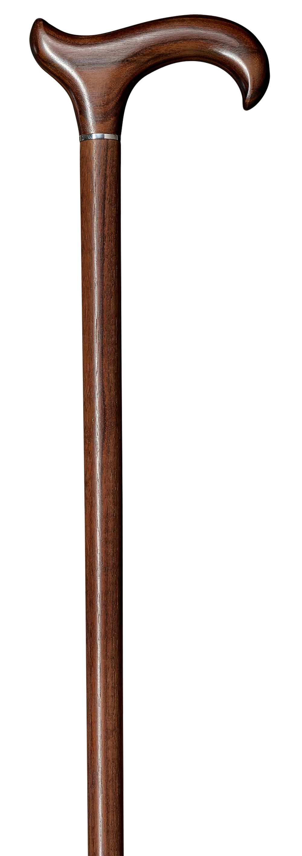 Handgefertigter L-DERBY-Stock aus exklusivem, amerikanischem Nussbaumholz. Eine Rarität aus dem Hause GASTROCK. Durch eine Glanzpolitur wird der Stock veredelt und versiegelt und bringt die Maserung des Holzes zum Vorschein. Mit Chromring und Gummipuffer.