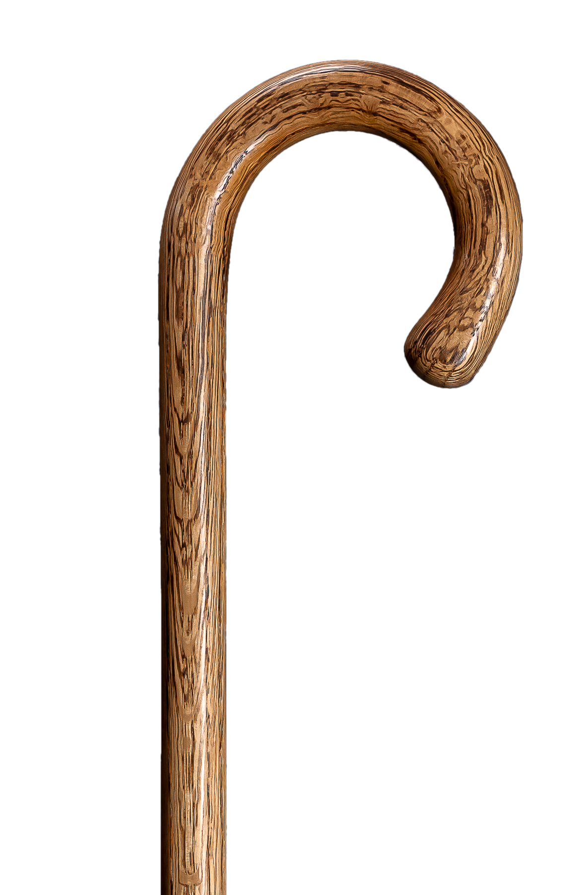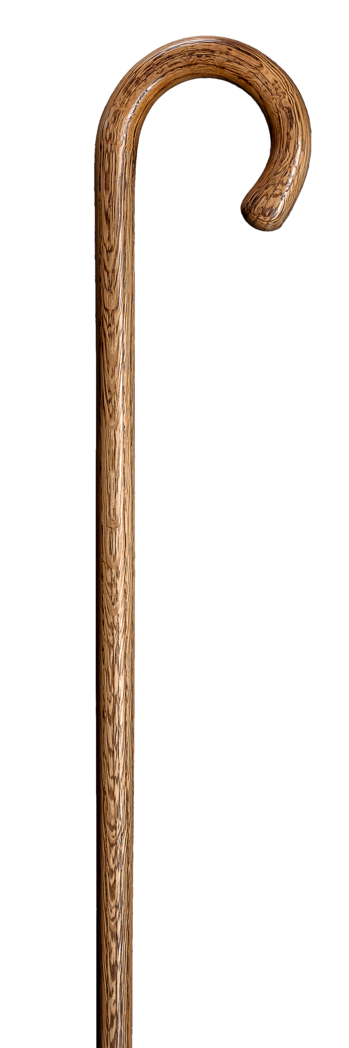 Eleganter, handgefertigter Rundhakenstock aus deutschem Eichenholz. Aus einem Stück in speziellem Biegeverfahren hergestellt. Mit einzigartigem "Nasenschliff", geflammt und durch eine spezielle Glanzpolitur veredelt und seidenmatt lackiert. Mit Gummipuffer.