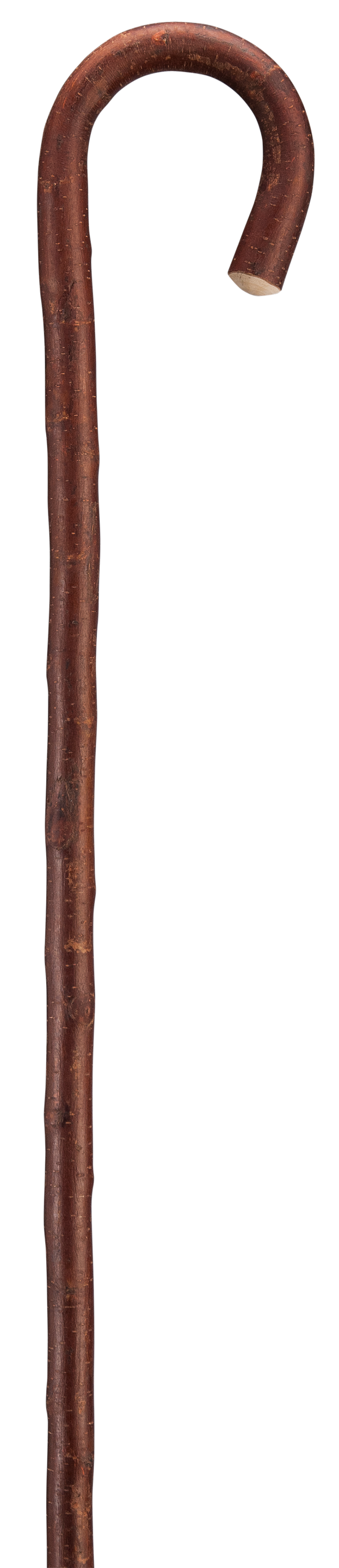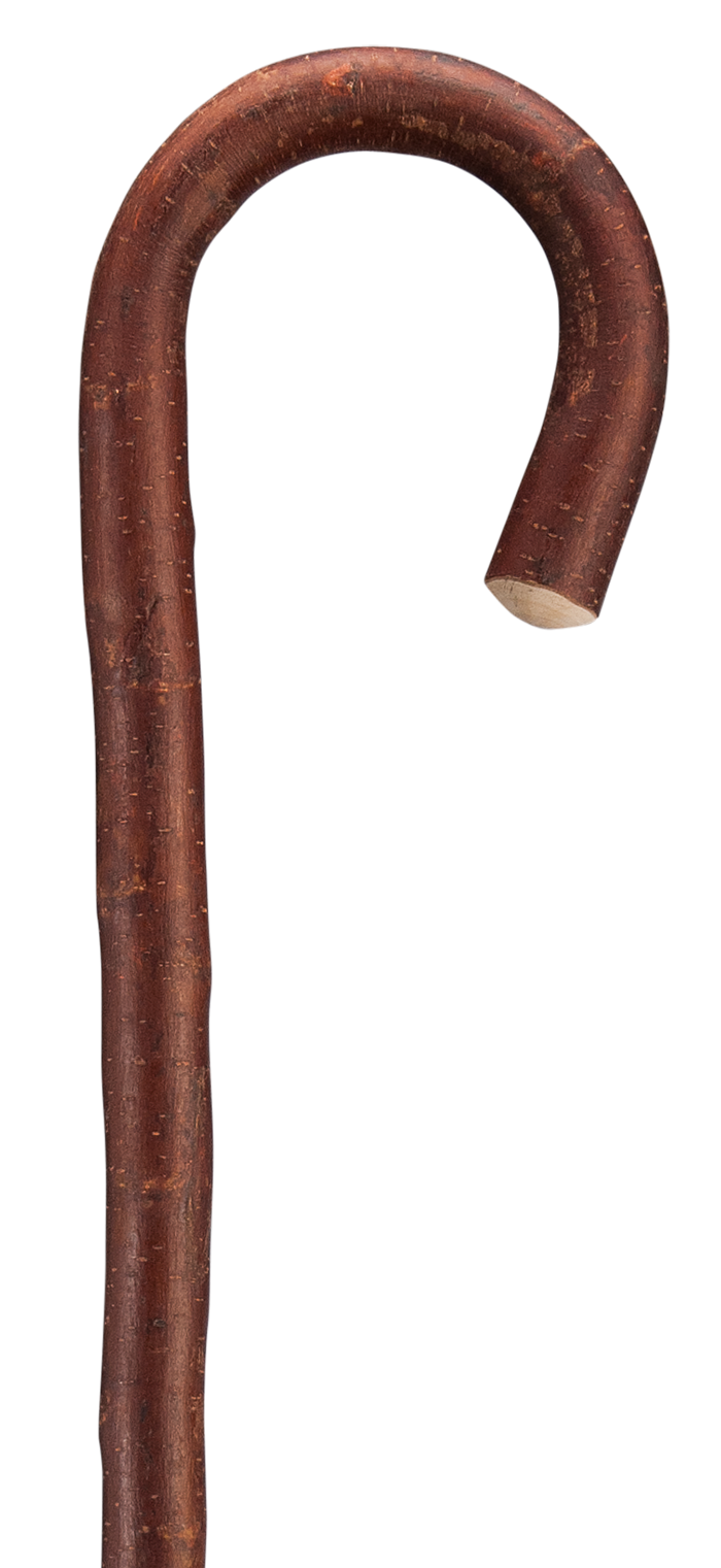 Aus eigener Plantage geernteter und handgefertigter Wanderstock aus Weichselkirsche mit Rundhakengriff, in speziellem Verfahren gebogen, rindenecht und naturbelassen. Mit vernickelter Spitzzwinge.